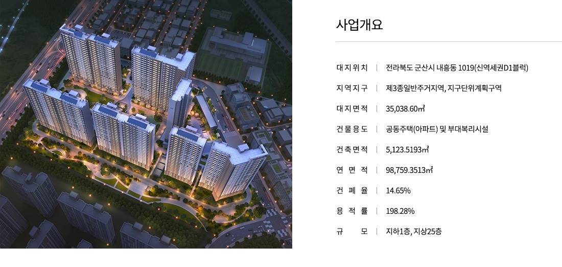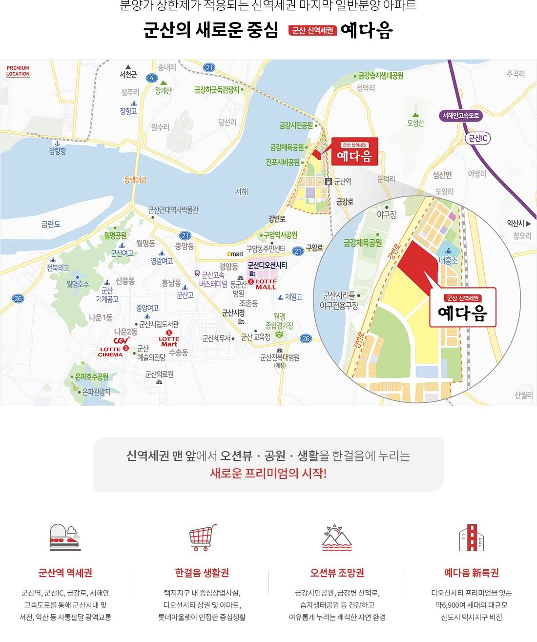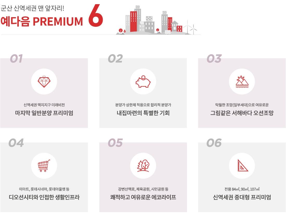 SPECIAL 01 군산 신역세권 예다음 브랜드가 완성하는 랜드마크의 품격 도심 속 새로운 중심, 브랜드 가치와 상징성을 모두 갖춘 프리미엄 주거 랜드마크입니다. 더 알아보기 SPECIAL 02 도심을 빠르게 잇는 초연결 교통 프리미엄 확장되는 교통망과 풍부한 생활 인프라가 만나는 핵심 입지, 미래의 중심에서 새로운 가치를 누리세요. 더 알아보기 SPECIAL 03 합리적인 분양 혜택과 스마트 금융 프로그램 맞춤형 금융 혜택과 유연한 분양 조건으로 초기 부담은 낮추고, 기회는 높였습니다. 더 알아보기 SPECIAL 04 세심한 설계로 완성된 품격 있는 주거공간 군산 신역세권 예다음 효율적인 공간 구성과 쾌적한 환경 설계로 일상의 여유와 만족을 더했습니다. 더 알아보기 SPECIAL 05 미래를 선도하는 가치, 지속되는 개발의 중심 군산 신역세권 예다음 풍부한 개발 호재와 성장 잠재력을 품은 입지로 높은 미래 가치를 기대할 수 있습니다. 더 알아보기 SPECIAL 01 군산 신역세권 예다음 브랜드가 완성하는 랜드마크의 품격 도심 속 새로운 중심, 브랜드 가치와 상징성을 모두 갖춘 프리미엄 주거 랜드마크입니다. SPECIAL 02 도심을 빠르게 잇는 초연결 교통 프리미엄 확장되는 교통망과 풍부한 생활 인프라가 만나는 핵심 입지, 미래의 중심에서 새로운 가치를 누리세요. SPECIAL 03 합리적인 분양 혜택과 스마트 금융 프로그램 맞춤형 금융 혜택과 유연한 분양 조건으로 초기 부담은 낮추고, 기회는 높였습니다. SPECIAL 04 세심한 설계로 완성된 품격 있는 주거공간 군산 신역세권 예다음 효율적인 공간 구성과 쾌적한 환경 설계로 일상의 여유와 만족을 더했습니다. SPECIAL 05 미래를 선도하는 가치, 지속되는 개발의 중심 군산 신역세권 예다음 풍부한 개발 호재와 성장 잠재력을 품은 입지로 높은 미래 가치를 기대할 수 있습니다.